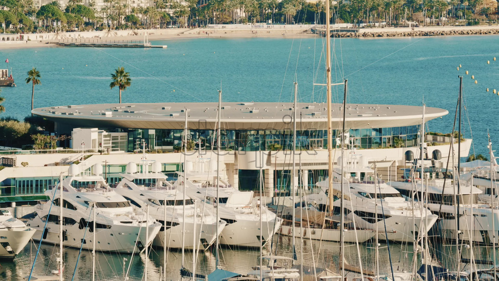 Dozens of luxury yachts anchored in thePort Pierre Canto in Cannes, with scenic coastal architecture and calm blue sea Royalty Free Stock Video Footage