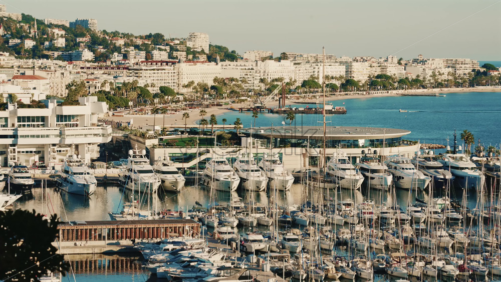 Modern luxury yachts docked side by side at a marina on the French Riviera Royalty Free Stock Video Footage