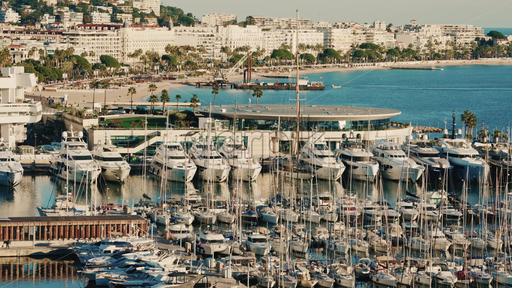 Modern luxury yachts docked side by side at a marina on the French Riviera Royalty Free Stock Video Footage