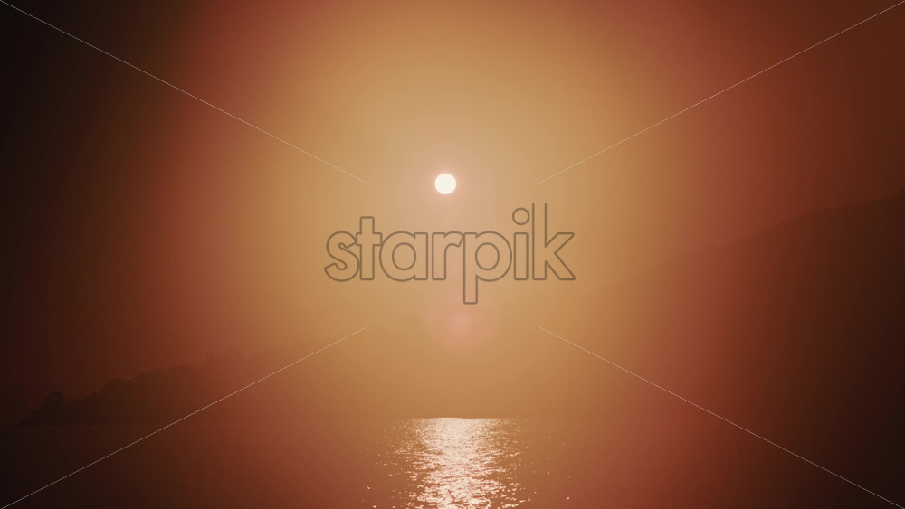 Video – Wide shot of the sunset illuminating the sea surface, creating a bright reflection on the water