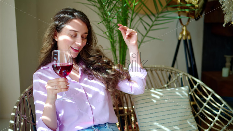 Home » Shop » 1 Video » Video Woman enjoying a glass of red wine and dancing in the daylight