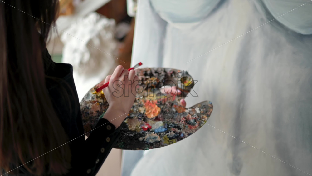 Close up of a woman paining on a paper at an art gallery workshop Royalty Free Stock Video Footage