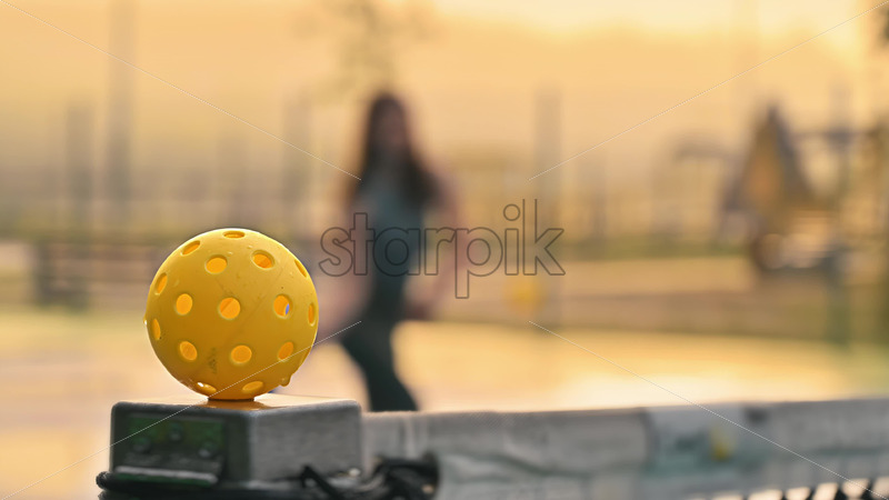 VIDEO A man and a woman playing pickleball at sunrise, after rain Royalty Free Stock Video Footage