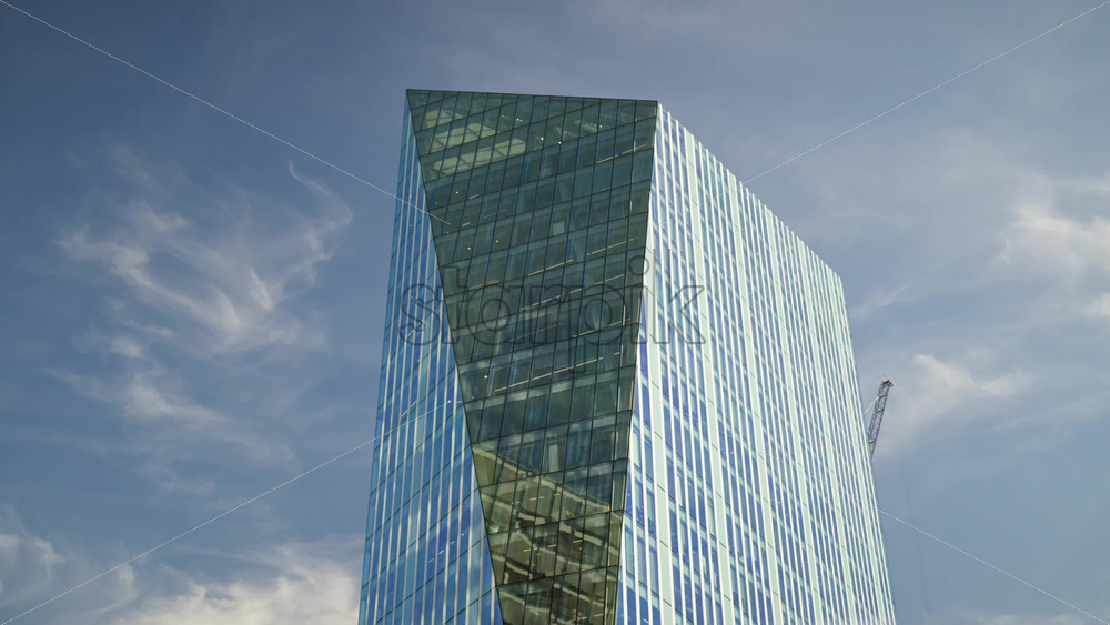 Close-up of a unique office building facade with angled, geometric window frames in London, England near the financial center Royalty Free Stock Video Footage