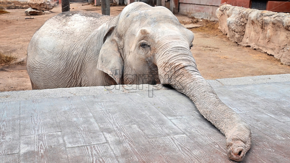 View of an elephant with his trunk in Terra Natura zoo in Benidorm, Spain