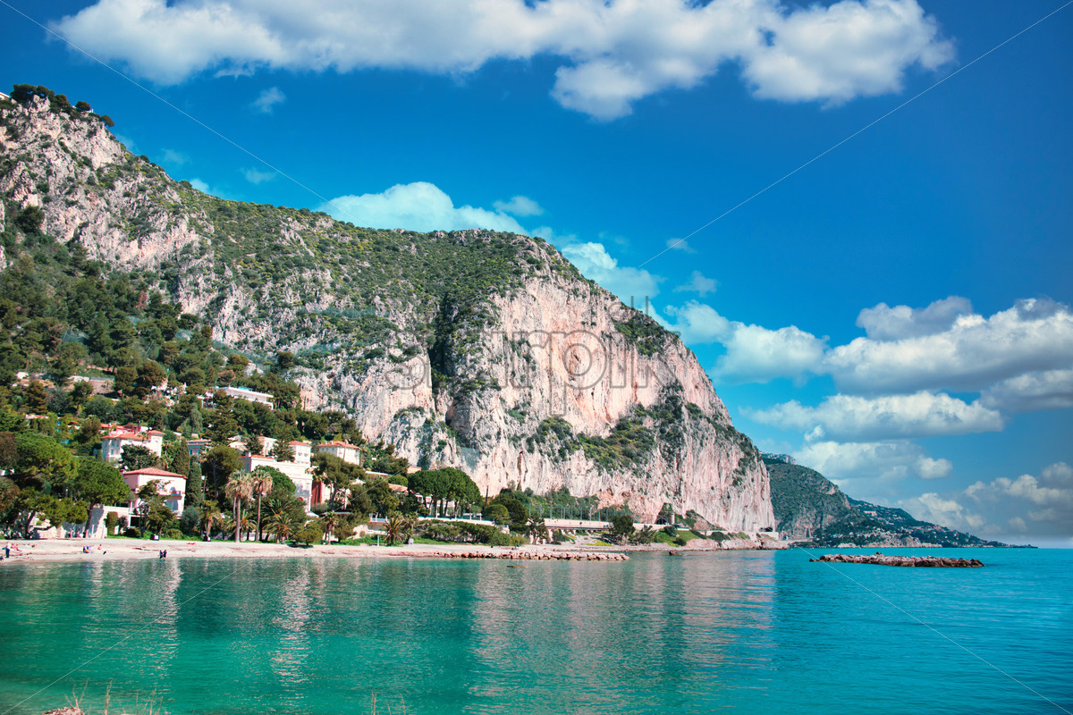 Home » Shop » buildings » View of Beach Petite Afrique, in Beaulieu-sur-Mer, France
