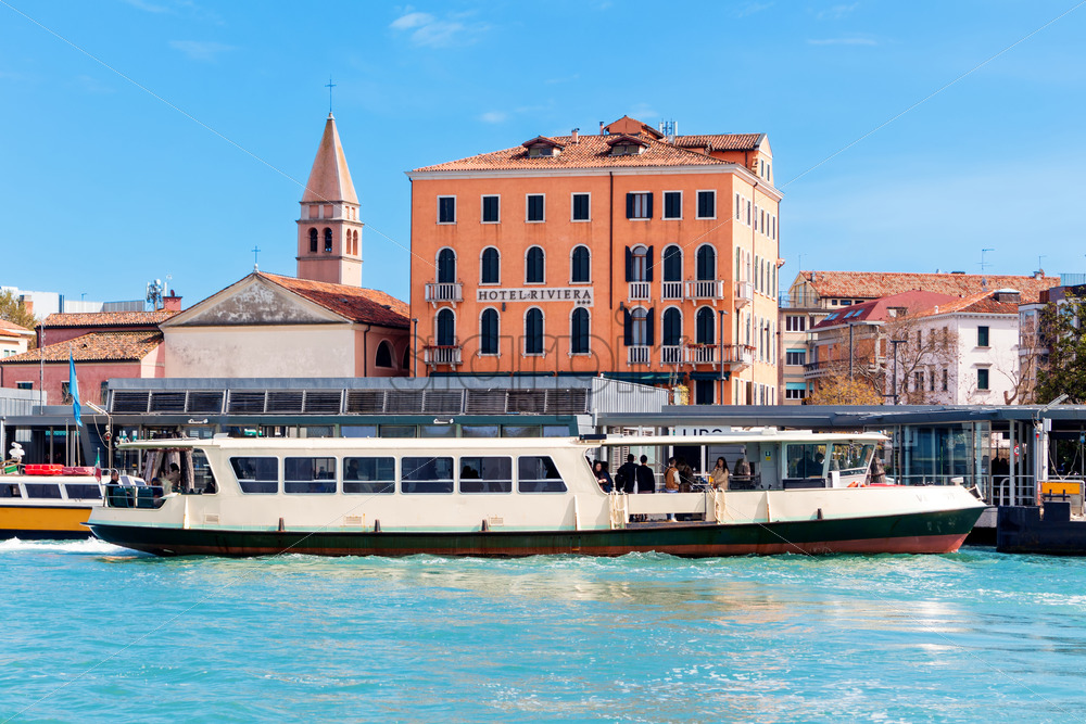 Aerial drone view of Venice, Italy. Water channels with multiple floating and moored boats, historical city centre with St Mark’s Square and other old buildings and narrow streets