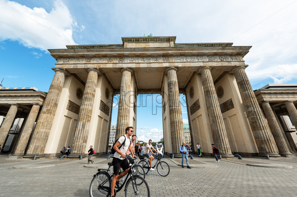 BERLIN, GERMANY – SEPTEMBER, 2022: View of Brandenburg Gate in city downtown, tourists around it