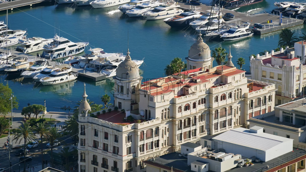 View of Casa Carbonell’s domes overlooking the yacht marina in Alicante, Spain Royalty Free Stock Video Footage