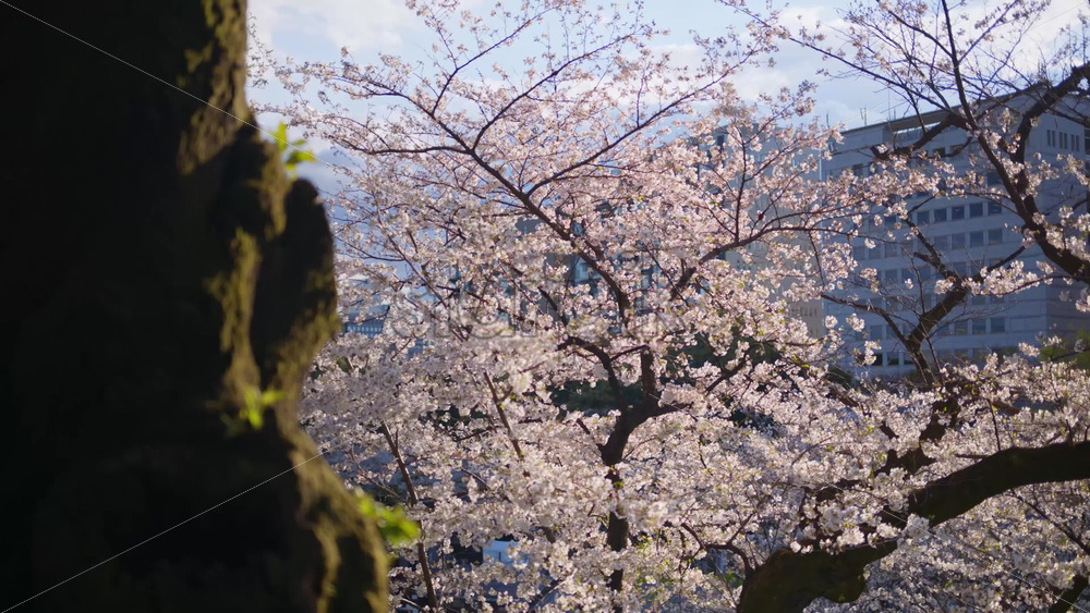 Cherry blossom trees in the Kokyo Gaien National Garden near the guest house in Chiyoda, Tokyo, Japan Royalty Free Stock Video Footage