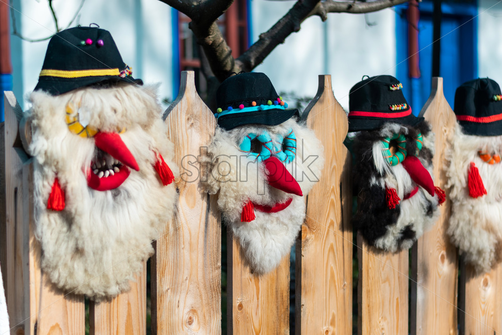 Home » Shop » photo » View of handmade national masks on a fence in Village Museum in Bucharest, Romania