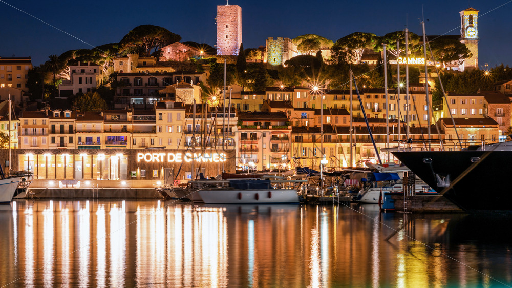 Home » Shop » photo » View of sea port in Cannes at night, France