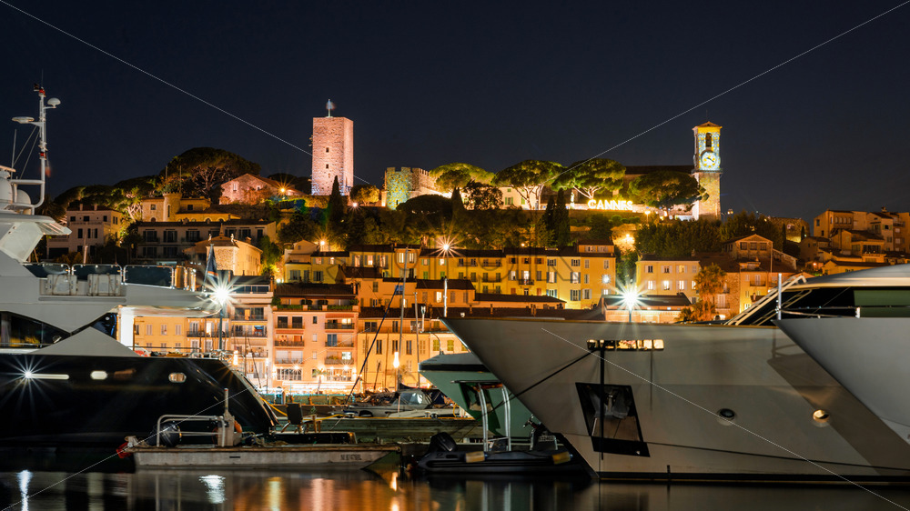 Home » Shop » photo » View of sea port in Cannes at night, France
