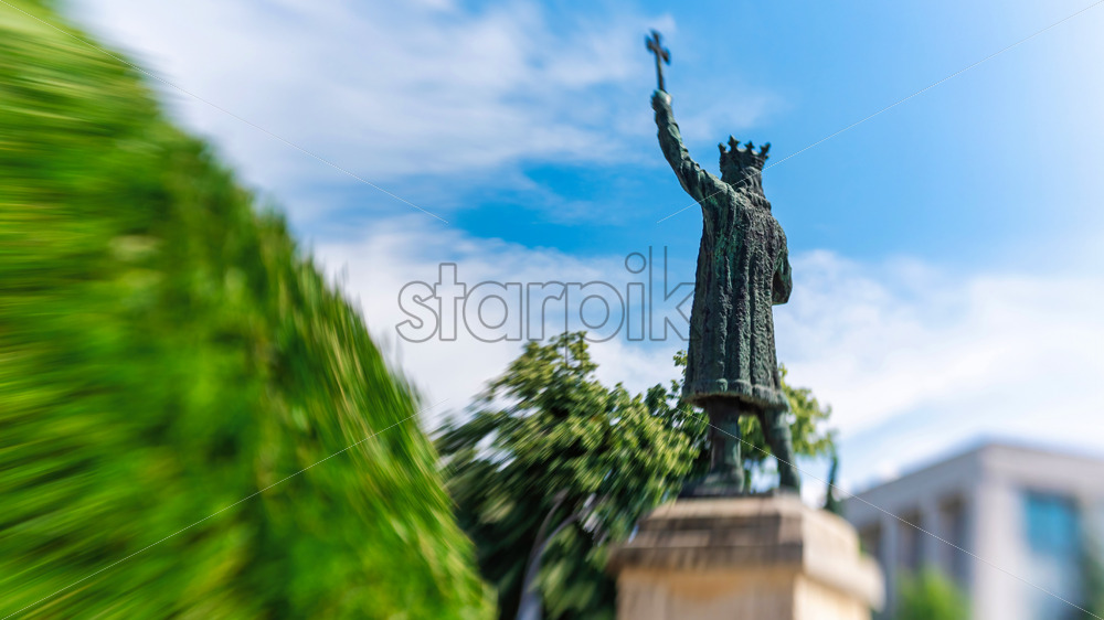 View of Stefan cel Mare in the center of Chisinau, Moldova, trees. Lensbaby artistic blur