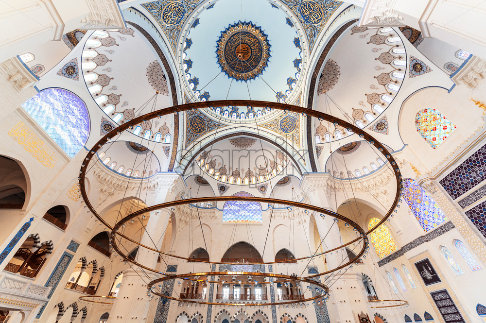 View of the ceiling of Camlica Mosque in Istanbul, Turkey
