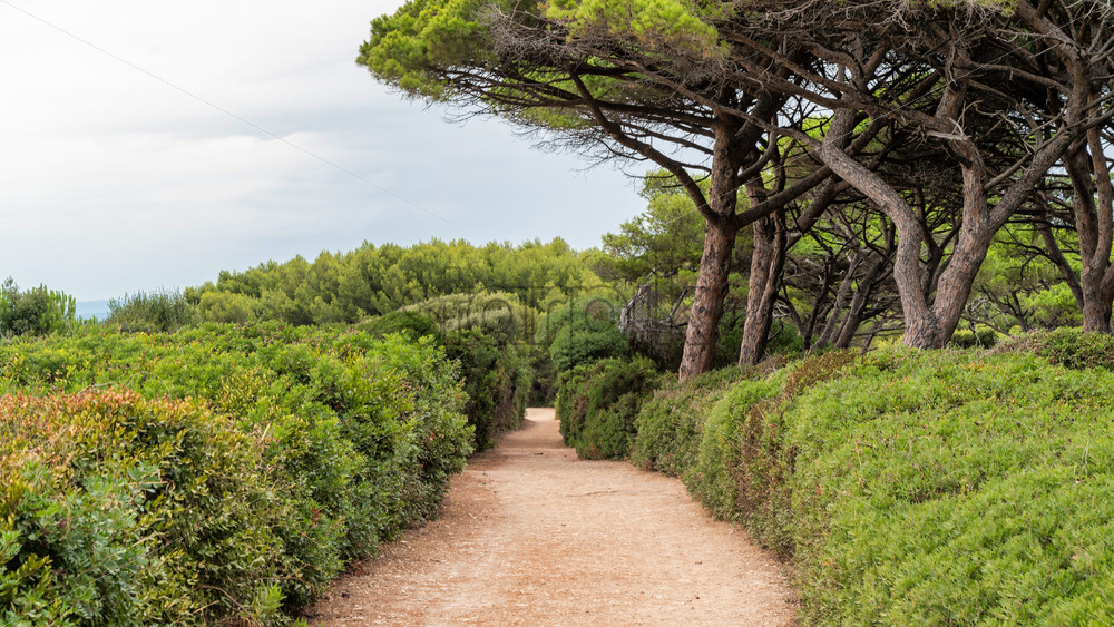View of the forest on the Island of Sainte-Marguerite, alley, greenery, France