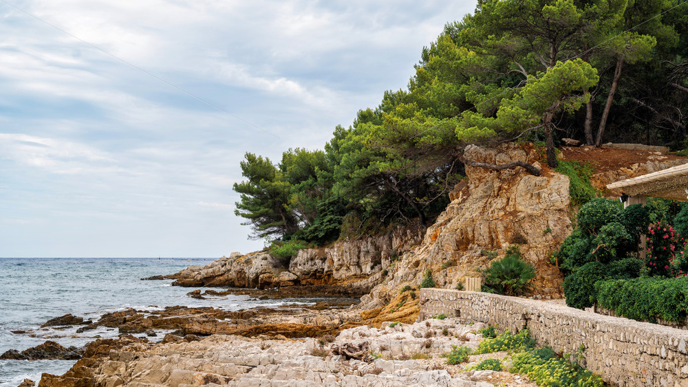 View of the sea coast on the Island of Sainte-Marguerite, France