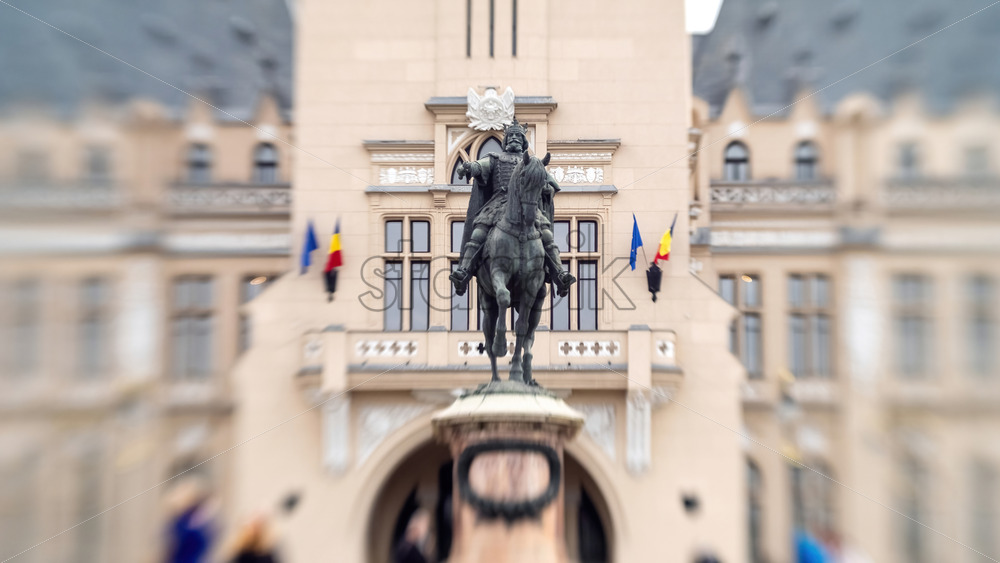 View of the Stephen the Great statue in front of the Palace of Culture in downtown. Lensbaby effect
