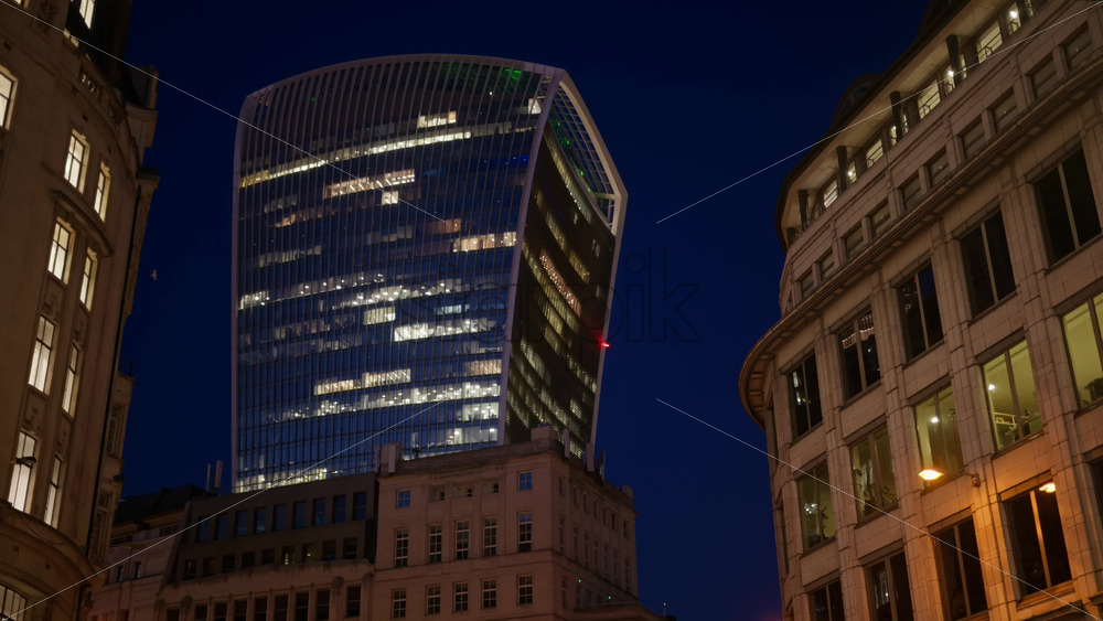 View of the Walkie Talkie building in the evening in London, England. Vertical Royalty Free Stock Video Footage