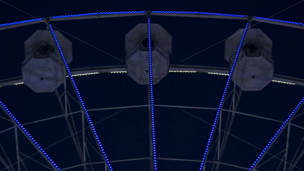 View of white, illuminated ferris wheel rotating in Antibes, France in the evening Royalty Free Stock Video Footage
