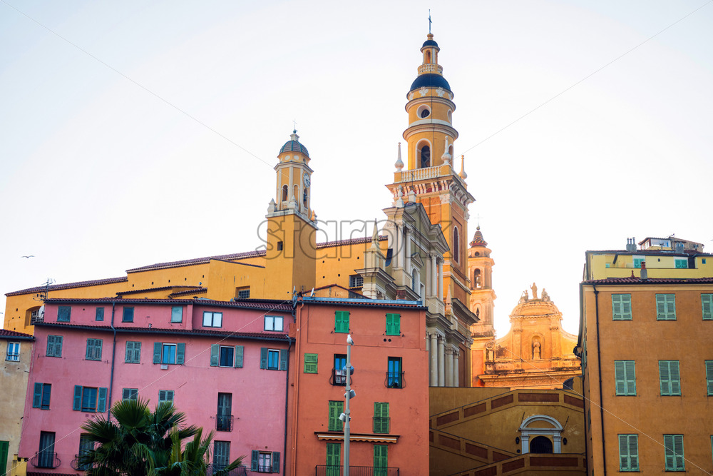 Village Architecture building facades in old down of Menton, France
