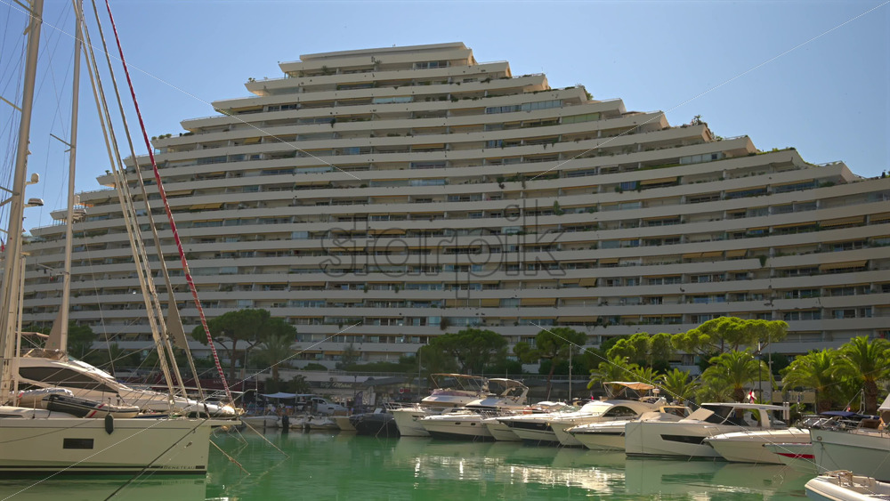 Home » Shop » 1 Video » Video – Villeneuve-Loubet, France – June 7, 2025: Boats docked in the Marina Baie des Anges in daylight