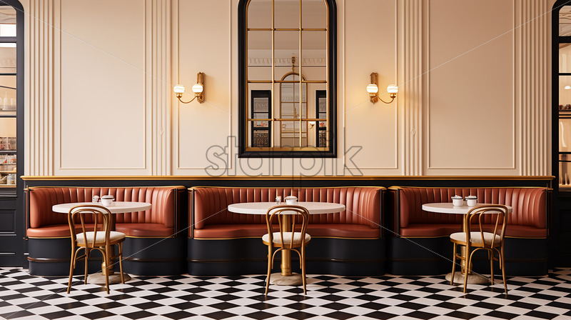 Vintage Cafe architecture in the city in a classy theme cozy couch and a fine wall with a rattan chair and a neat and elegant vibes