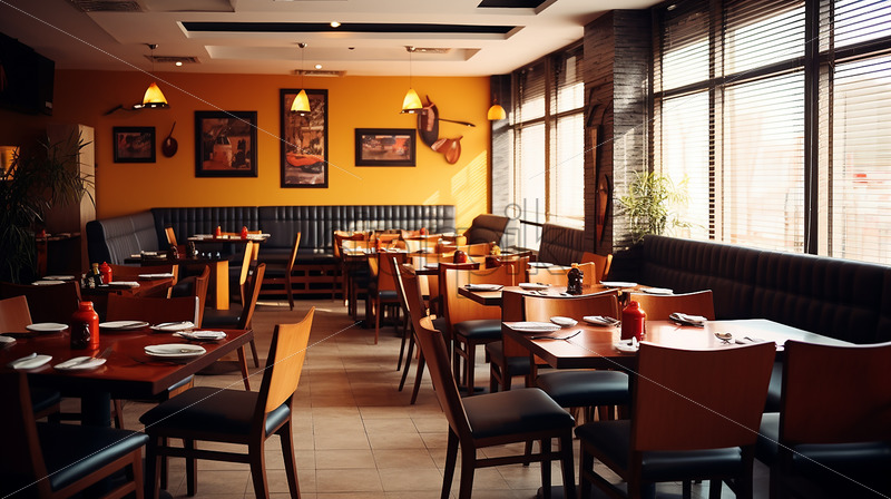 Vintage Cafe architecture in the city in a yellow and wood theme classy counter with indoor plants classy theme