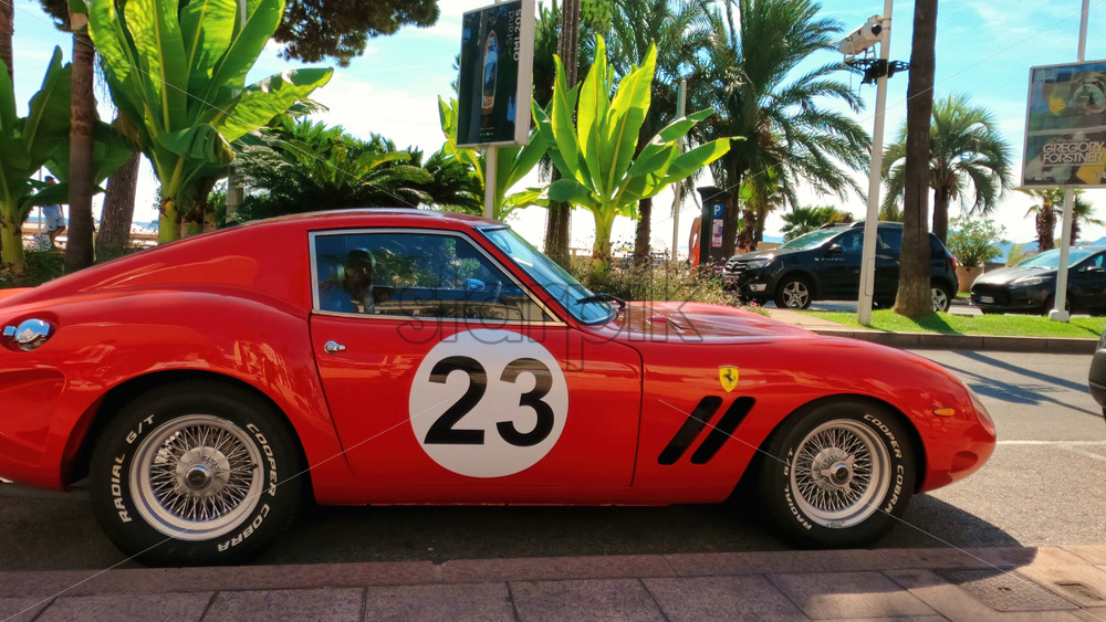 CANNES, FRANCE – SEPTEMBER 12, 2021: Side view of a red vintage racing Ferrari