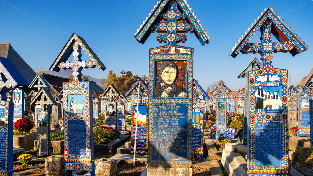 VISEU DE SUS, ROMANIA – OCTOBER 29, 2021: View of tombstones at the Merry Cemetery