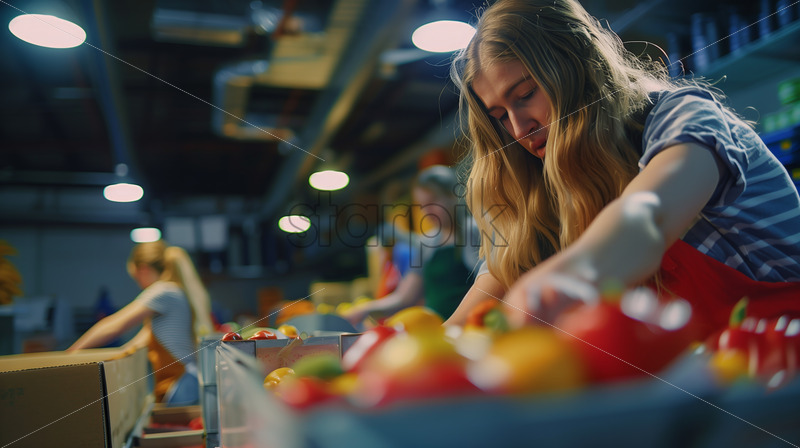 Volunteers sorting and distributing food at a local food bank, supporting those in need and contributing to the fight against hunger.