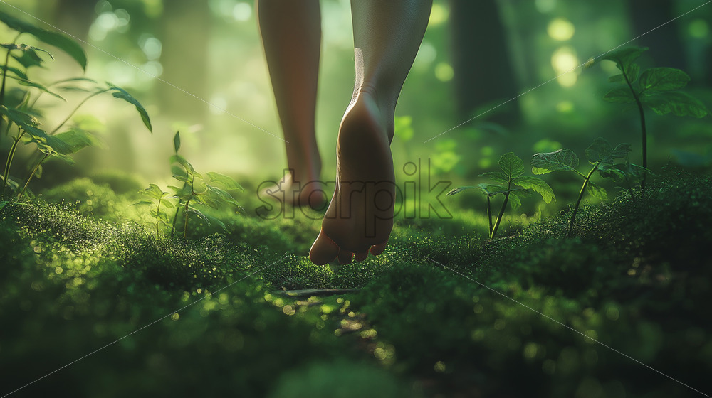 Home » Shop » AI Illustration » walking legs barefoot through nature, mindful walking, healthcare