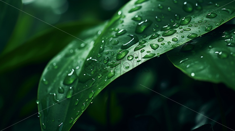 Close up photo of red ripe cherries with green leaves on a tree, with drops of water in the rain.