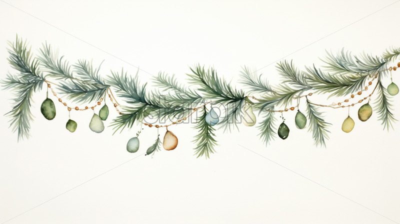 Watercolor Christmas garland on white