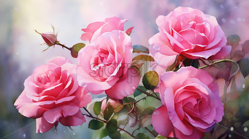 A pink rose on a white background in watercolor for the wedding, clipart style