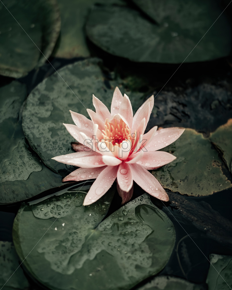 Home » Shop » photo » Waterlily. Light pink flower surrounded by pads close-up.
