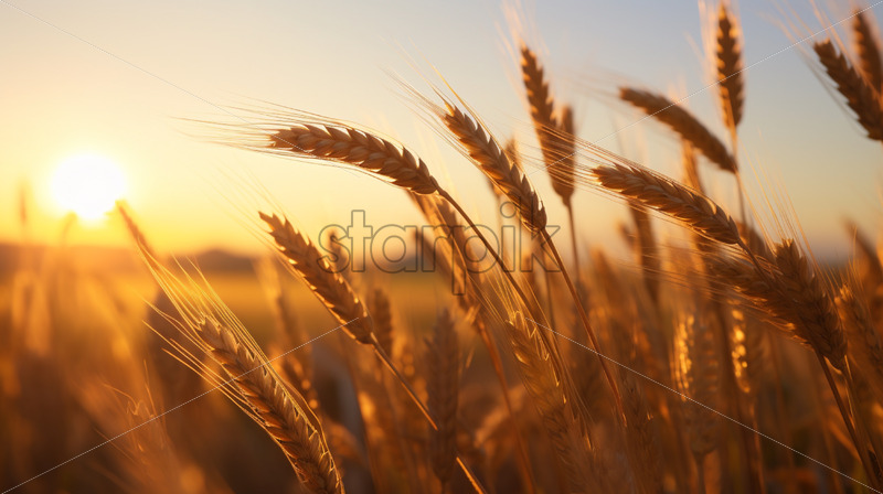 A farmer inspecting crops in a field, illuminated by the setting sun’s warm glow.