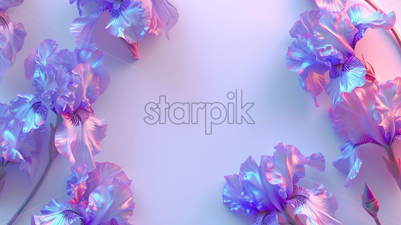 White blank surface, neon iris flowers