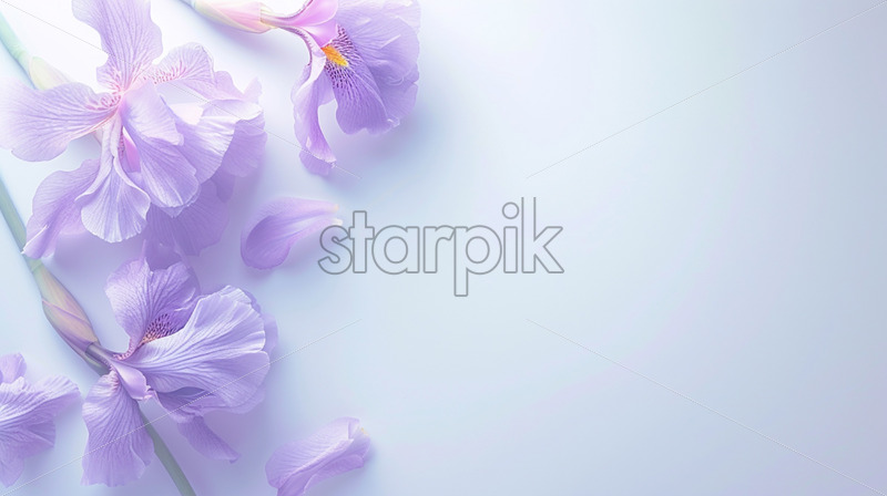 White blank surface, neon iris flowers