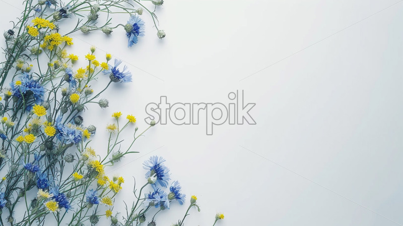 White blank surface with blue and yellow wild flowers