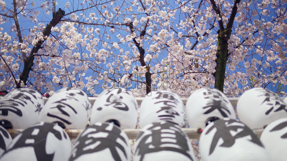 White paper lanterns with cherry blossoms on the background in the courtyard of the Senso-ji temple in Asakusa, Tokyo, Japan Royalty Free Stock Video Footage