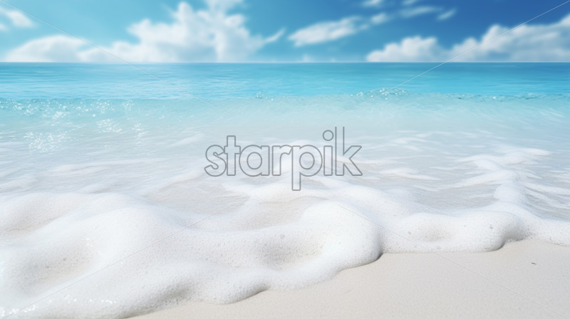 A beach with white sand and big waves