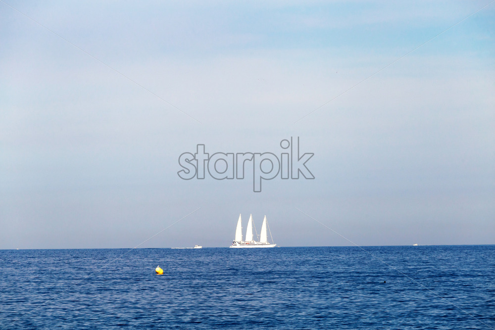 Elegant white yacht cruising on the deep blue sea off the coast of Cannes, France Royalty Free Stock Video Footage