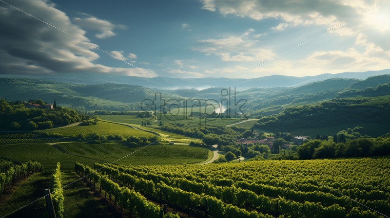 Nature scape of Greece, fields with greenery, green hills visible in the distance, cloudy weather Royalty Free Stock Video Footage