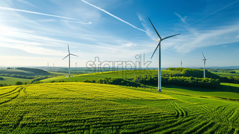 Wind turbines on a green field