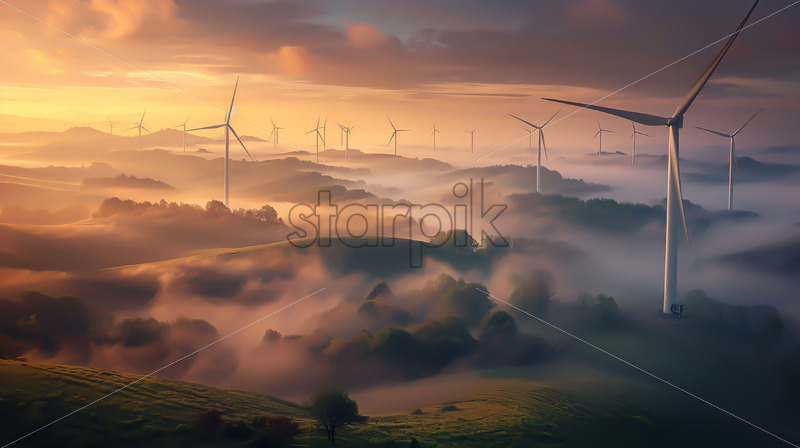 Aerial drone view of the golden sun over the Danish coast, casting light on offshore wind turbines. Copenhagen, Denmark Royalty Free Stock Video Footage