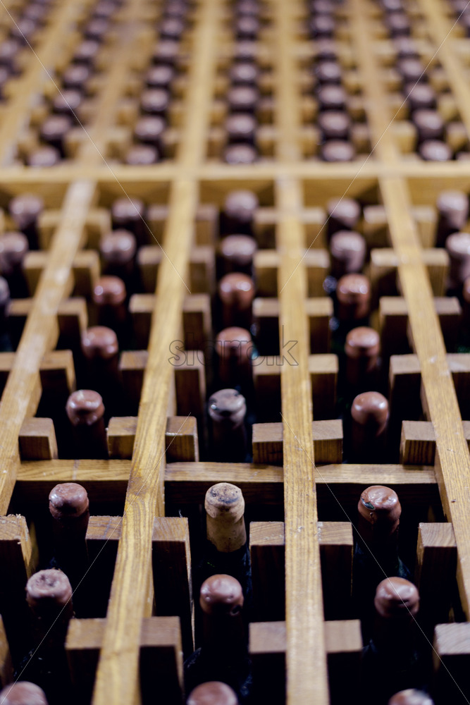 Lots of red wine bottles in Chateau Vartely in Moldova