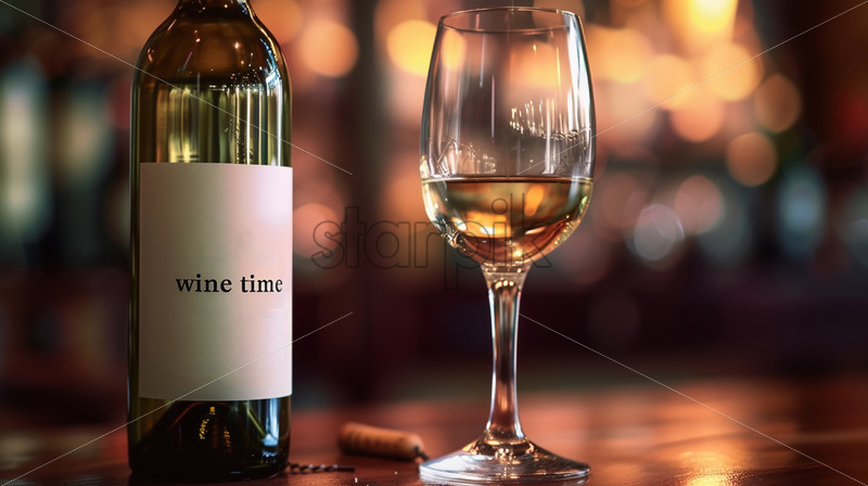Wine time, a bottle and glass banner