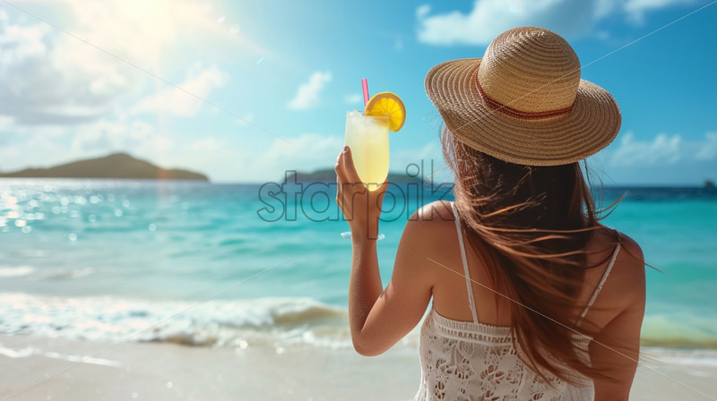 Red cocktail with orange slice on a table by the blue green sea video Royalty Free Stock Video Footage