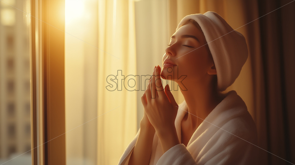 woman enjoying morning health and beauty care